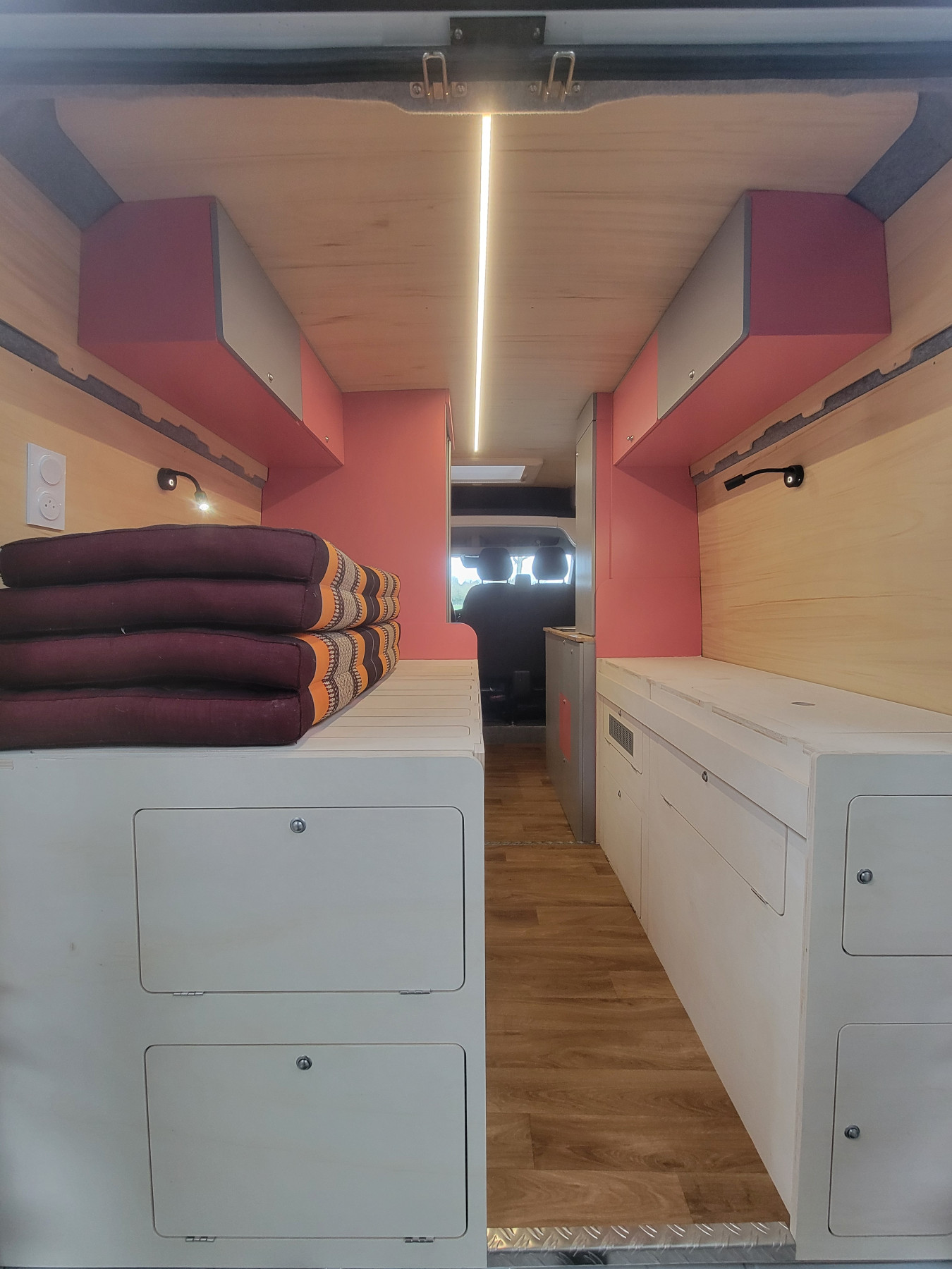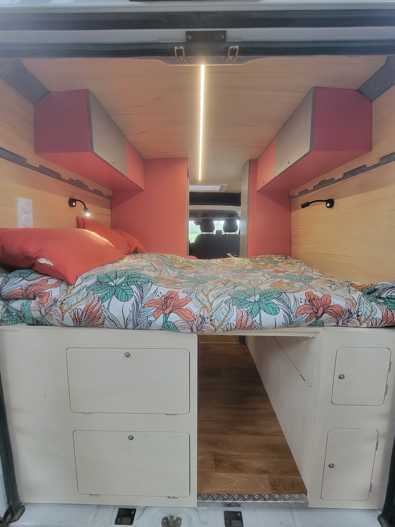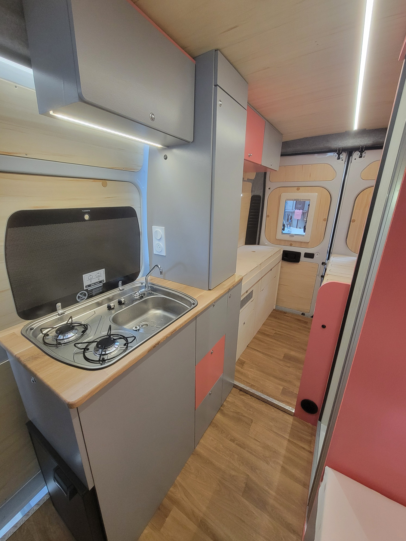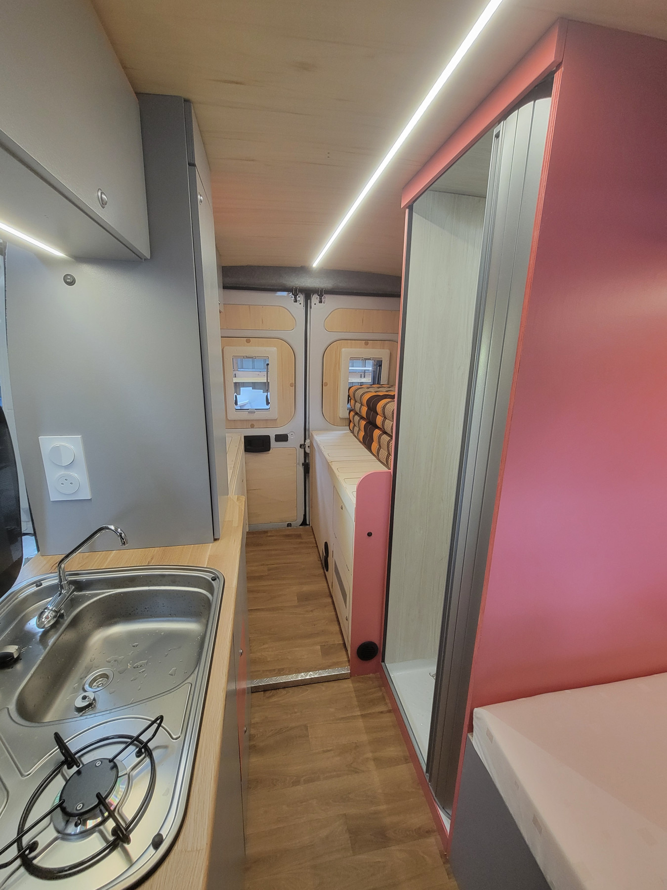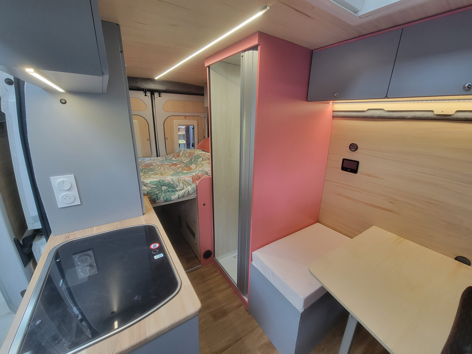 Un fourgon transformé en véritable cocon mobile, alliant confort, autonomie et finitions soignées.